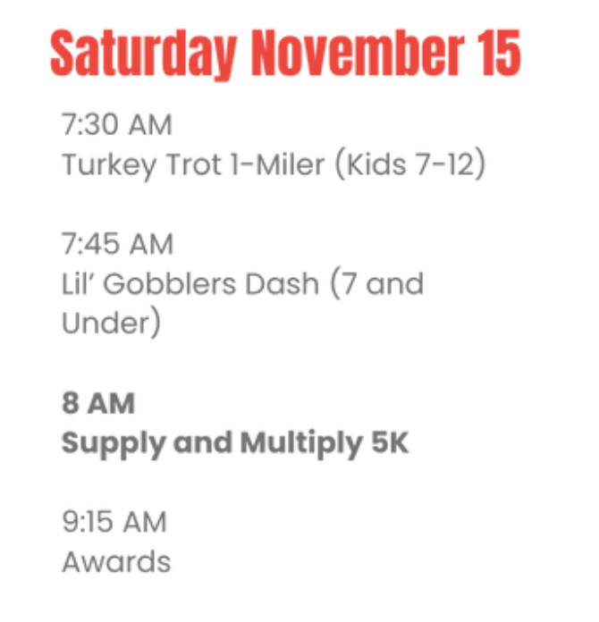 We want everyone to enjoy the event….at their own pace. So we will have chip-timed 5K race (with 10-year age group increments going three deep with awards), as well as a leisurely walk to simply take your time while raising money for your favorite charity.